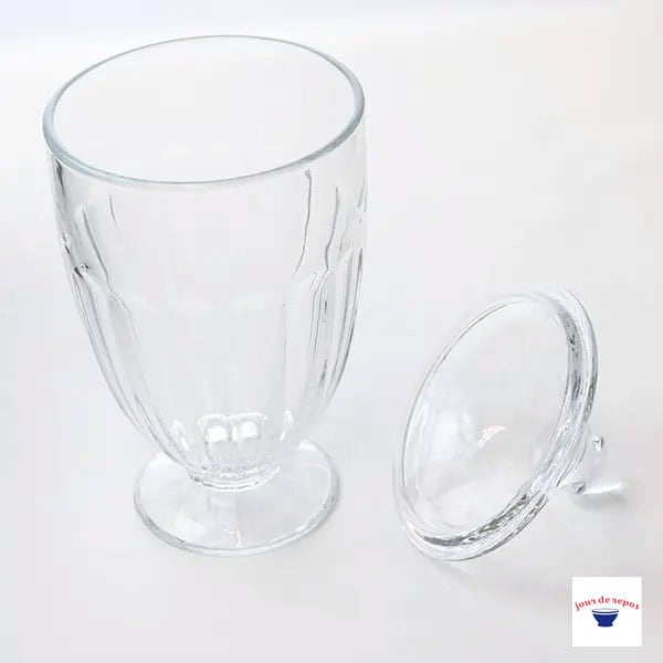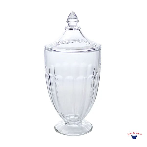 クラシカルなデザインのガラス製ボンボニエール。砂糖菓子やカヌレなどを美しくディスプレイし、特別なおもてなしのひと時を引き立ててくれそうです。