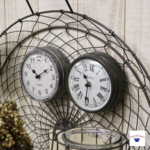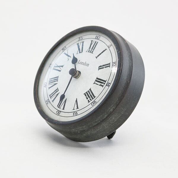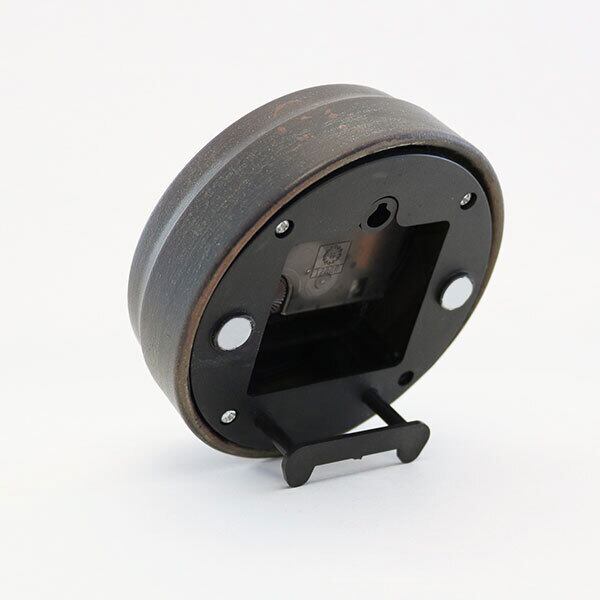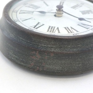 アンティーク調の掛け時計。掛けても置いても使えます。裏にマグネット付なので冷蔵庫の実用的アクセントに。釘やダルマ型の画鋲を壁に挿して提げられるので、 気軽に扱えるアイテムです。