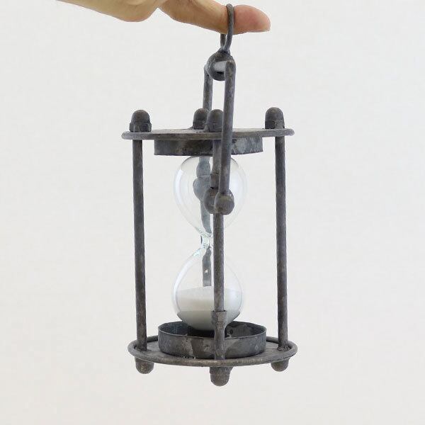 フック付のアンティーク調の砂時計。キッチンやリビングの壁に掛ける事ができ、デスク周りのインテリアとしてオススメです。計測時間は約5分になります。