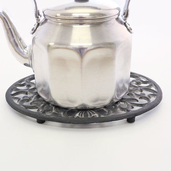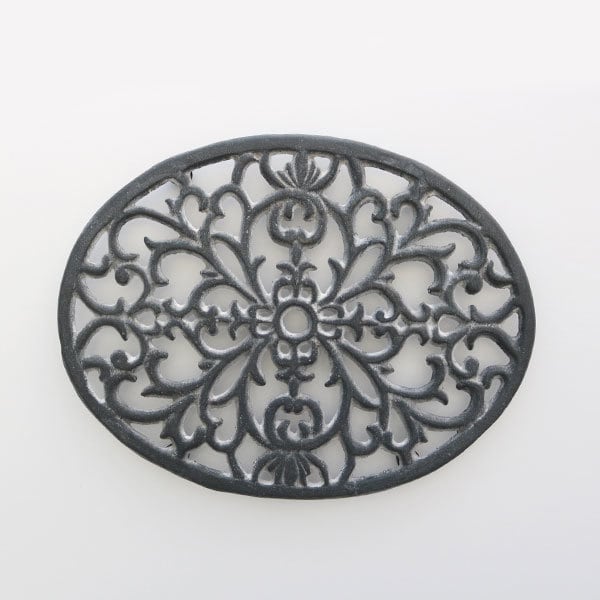 アンティークを思わせる錆びた鉄仕上のオーバル型鍋敷きです。使い込まれたような雰囲気たっぷりのアイテムです。