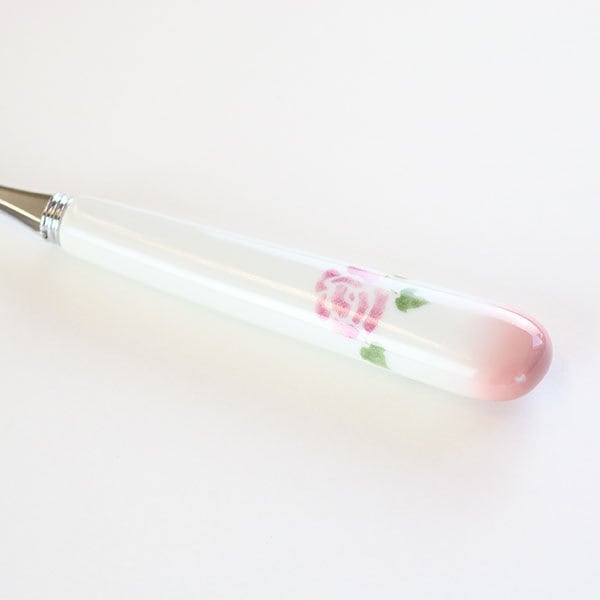 華やかなローズ柄が食卓のアクセントになるディナースプーン。適度な重みと握りやすい形状になっております。