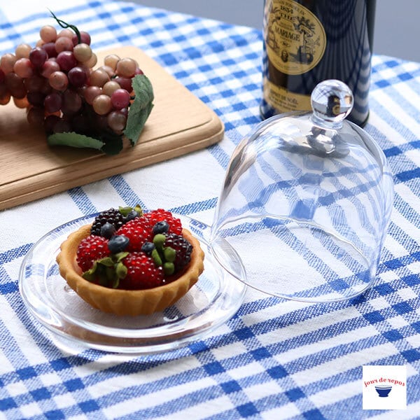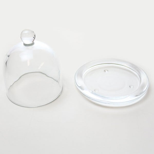 コロンとしたフォルムのガラスドーム&ソーサー。食品だけでなく、お気に入りのアクセサリーのホコリ避けとしても役目を果たしてくれます。