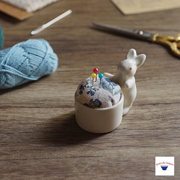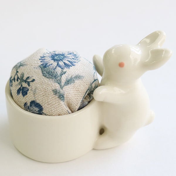 キュートなウサギの陶器ピンクッション。