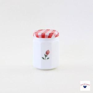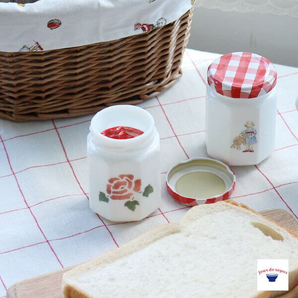 かわいい形をしたジャム瓶。国内生産のミルクガラスを使用し、手作りのジャムや調味料入れとしてオススメです。