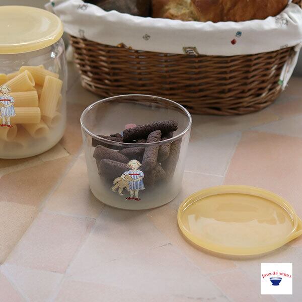プチメゾン柄のガラステーブルキャニスターS。