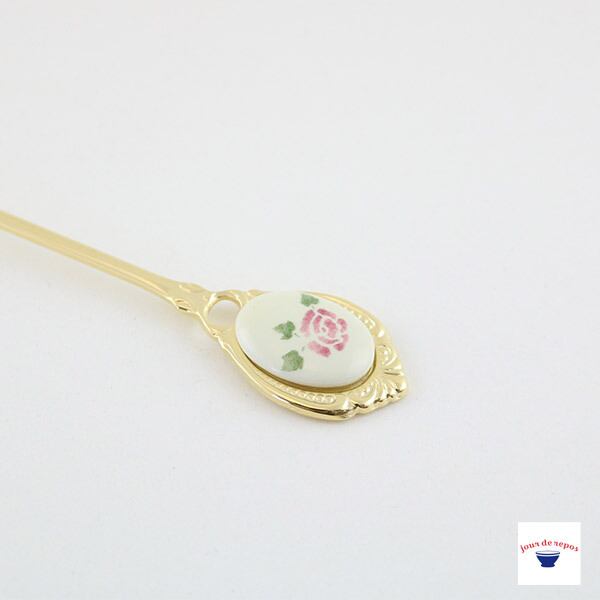 メタルのケーキフォーク。華やかなローズ柄が食卓のアクセントになりティータイムを上品に演出してくれそうです。